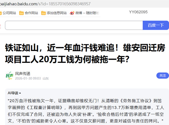 2.问项目管理的底线:一个国家级新区的重点民生工程,出现如此证据链完整却久拖不决的纠纷,反映出基层管理存在多大漏洞?建设者的汗水与时间,难道就这样消耗在无尽的“纠错”和“讨薪”路上吗?